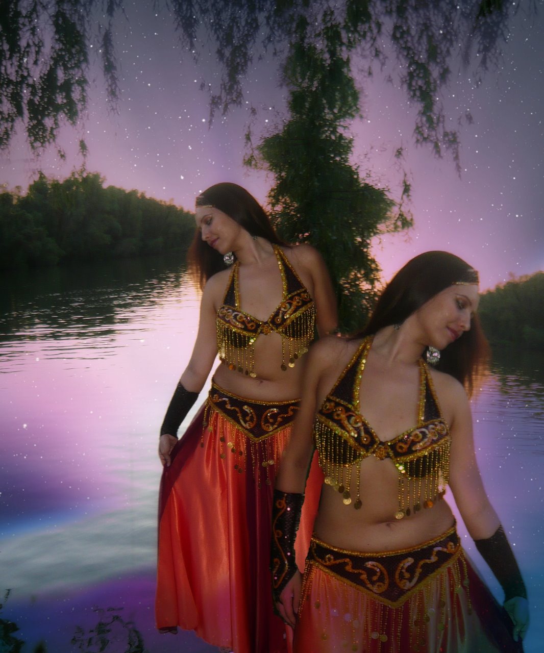 Kedvenc helyünkön léptünk fel, ahol rendszeres fellépőnek számítunk. Szeretjük, mert a közönség lelkes és hálás, a színpad tágas és jól felszerelt, a hangtechnika is megfelelő. Nyári melegben indultunk útnak, már a kocsiban orientális zene szólt, végig csacsogtunk, kellemes izgalom vett erőt rajtunk. Ahogy megérkeztünk, szinte VIP-ként kezeltek minket, megmutatták az öltözőt, bejártuk a színpadot. A művelődési ház majdnem megtelt, zajlottak az előttünk szereplők műsorai. Az öltözőben készülődtünk, sorba rendeztük a fellépő kosztümöket, tánceszközöket. Ez mindig nagy odafigyelést igényel, hiszen gyakran kevés idő jut az átöltözésre és a ruhák, eszközök nem keveredhetnek össze. Szokás szerint elkezdtünk bemelegíteni és a lányok kérésére egy-két koreográfiát elgyakorolni, csak hogy levezessük az izgalmat és rögzítsük az irányokat, térformákat. Ám nem vittünk magunkkal zenét, csak pendrive-on és CD-n. A telefonomon ugyan megannyi zene volt, de nem azok, amelyek éppen kellettek. A csoport koncentrált és fejben elindította a zenét, én próbáltam számolni, de ez nem volt célra-vezető (főleg a klasszikus orientális zenék kevésbé számolhatók, a dallamvezetés, az éneklés, a hangsúlyok az iránymutatók inkább) ezért énekeltem. Nem volt egyszerű, valahogy így hangzott: tiriri tarara dum-tek-tek és a refrén: 'Pista, jöjj hamar'. Mégis mindenki 'zenelejátszója' ugyanott tartott. Előszeretettel magyarosítunk csak úgy magunk között egy-egy zene címét. A 'Pista, jöjj hamar' koreográfiánk zenéje eredetileg: Eshta ya amar, de már az előbbit szoktuk meg. Egy melaya koreográfiánk címe Sukkar bulag, nekünk viszont a 'Sukár bulák' cím jobban tetszett. Visszatérve az öltözői próbához, annyira egy hullámhosszon voltunk, hogy mindenki tudta, hol jár éppen a zene. Majdnem mindenki. A készülődés legviccesebb része az volt, amikor egyik táncosom megszólalt: "várjatok megakadt a lemez, lemaradtam" és akkor mindenki visszatekerte a zenét képzeletbeli lejátszóján a megfelelő részhez. A csak fejben szóló dallam követése és a helyes lépések táncolása, irányok, térformák tartása, hangsúlyok eltalálása komoly kihívást jelentett, de nem bírtuk ki nevetés nélkül. Végül megoldottuk és tökéletesen sikerült a műsor. Egyszóval zene nélkül is ér valamit a gyakorlás, bár viccesebb és több koncentrációt igényel. Ugyanígy amikor videóm https://www.youtube.com/watch?v=4I0jBOmuyB4 készült, akkor sem szólt sehol zene (hiszen szabadtéren vettük fel), csak a fejemben, de ez a végeredményen szerencsére nem látszik.